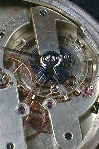 ピボテッドデテントポケットクロノメーターのテンプ周りの写真です。