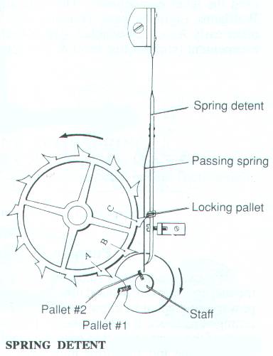 スプリングデテントとピボテッドデテントの違いは脱進機に弾力を持たせる方式です。