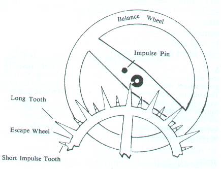 (テンプが止まっている状態では軸の溝がガンギの長歯に触れないためです)