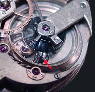 ピボテッドデテントポケットクロノメーターのテンプ周りの写真です。